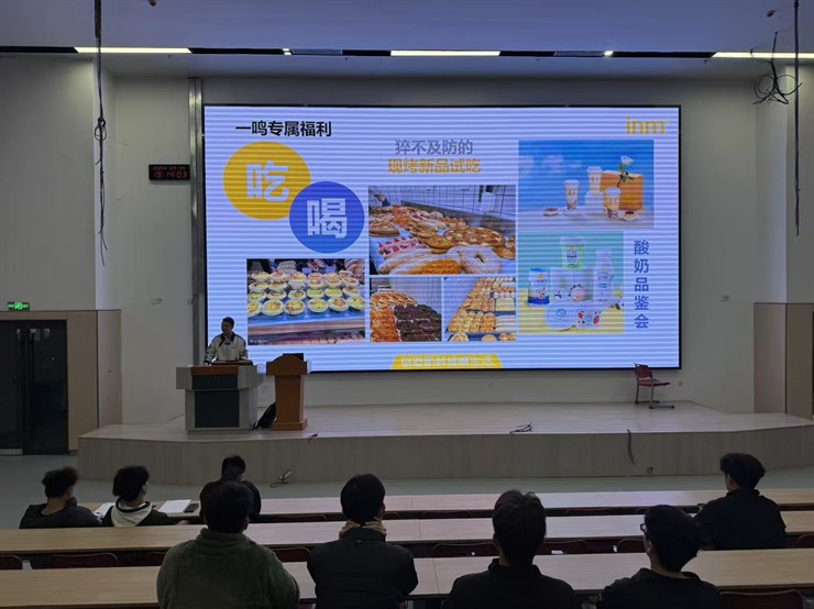 宣讲环节中,浙江一鸣食品股份有限公司招聘负责人以清晰的逻辑、详实的数据,全面解读了企业发展脉络——从品牌创立至今的成长历程、覆盖乳制品生产、连锁门店运营等领域的核心业务布局,以及在食品行业绿色化、品质化发展趋势下的广阔前景。同时,负责人重点介绍了企业完善的人才培养体系,明确此次招聘面向本科、硕士等各学历层次,覆盖食品科学、工商管理、市场营销、物流管理等多个专业,提供生产管理、市场策划、供应链协调、门店运营等多领域优质岗位。在待遇保障方面,企业不仅给出结构合理、具有行业竞争力的薪资,还配套五险一金、带薪年假、节日福利、员工培训基金等完善保障,更设置“基层-骨干-管理”的清晰职业晋升通道,全方位展现对高素质人才的渴求与重视。