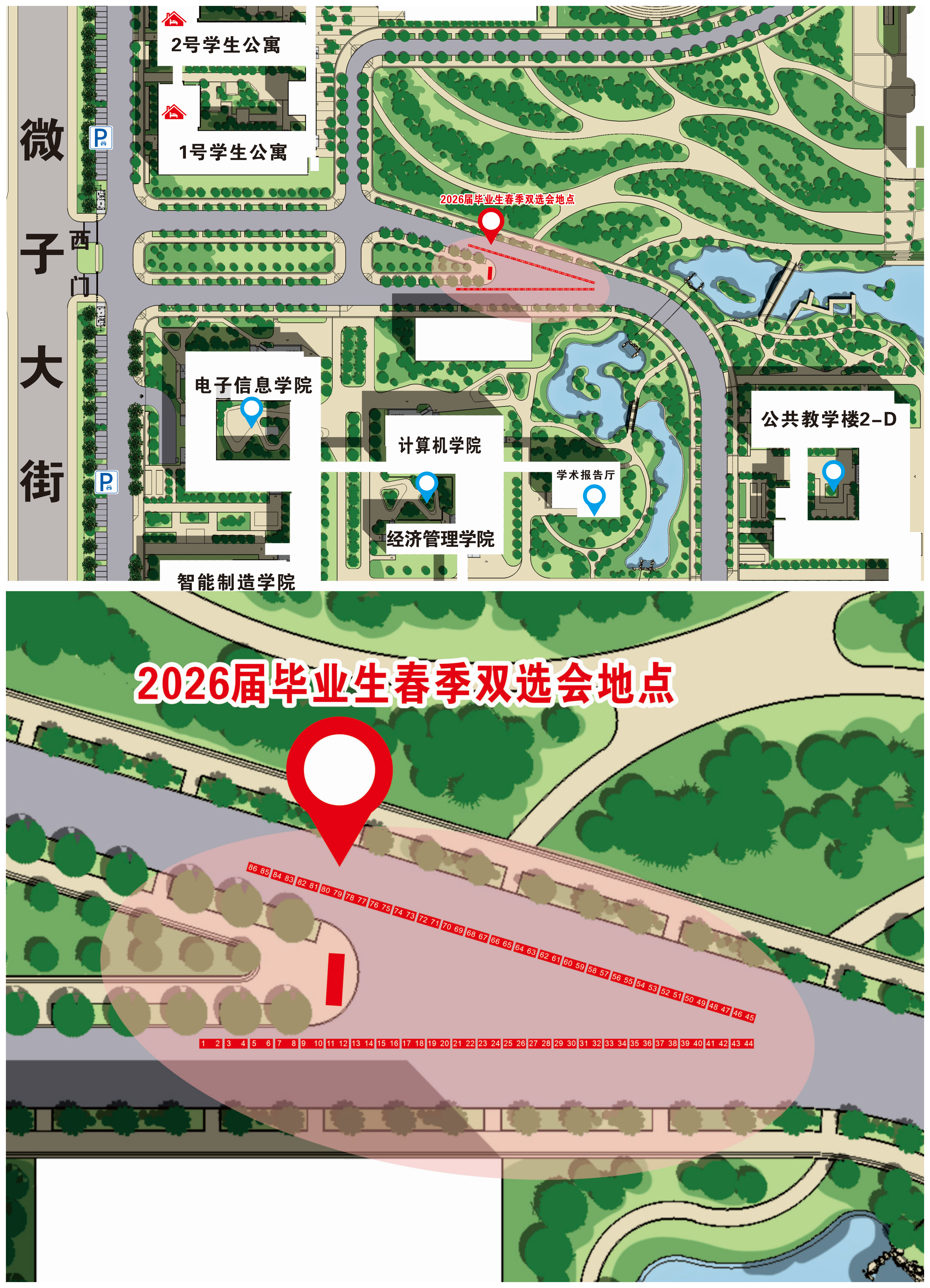 1. 本次双选会地点设在学院阳明路中段(白色非机动车棚北侧)。