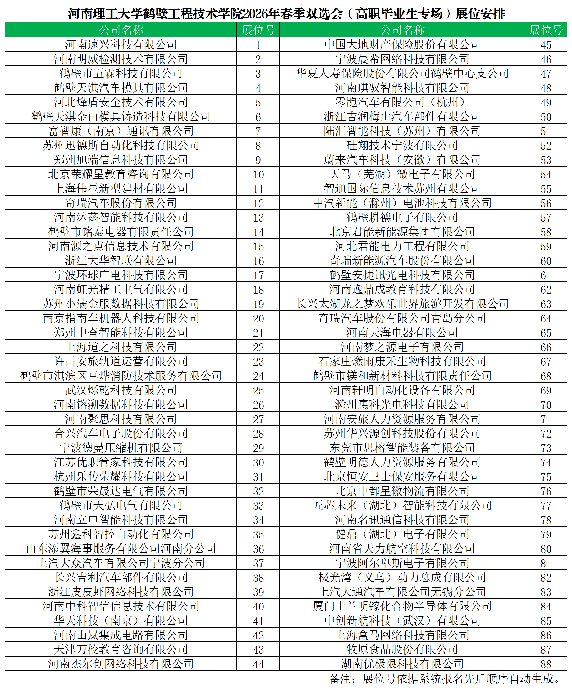 2026年春季校园双选会(高职毕业生专场)展位分配与入校须知